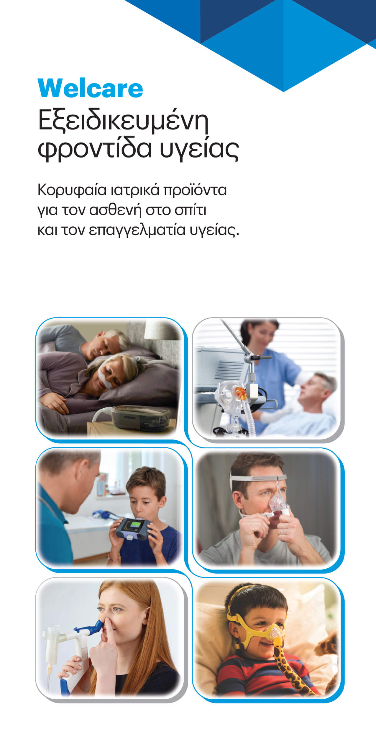 Η άρτια εκπαιδευμένη ομάδα Welcare, διαθέτοντας τεχνογνωσία σε όλα τα είδη αναπνευστικών συστημάτων και εξυπηρετεί τους ασθενείς κατ’ οίκον, παρέχοντας ταυτόχρονα ενημέρωση και εκπαίδευση στον τον ασθενή ή/και τους οικείους του στη χρήση των θεραπευτικών μέσων.